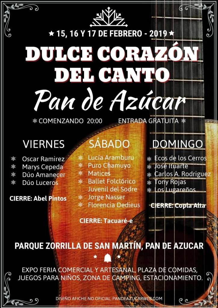 Como cada año, se reunirán en Pan de Azúcar los mejores artistas del folcore nacional para celebrar una nueva edición de Pan de Azúcar, Dulce Corazón del Canto 2019.