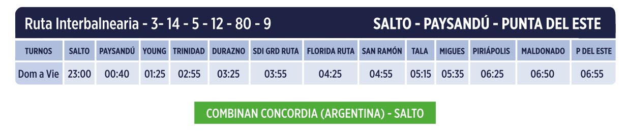 Horarios BRUNO – Salto – Paysandú – Punta del Este