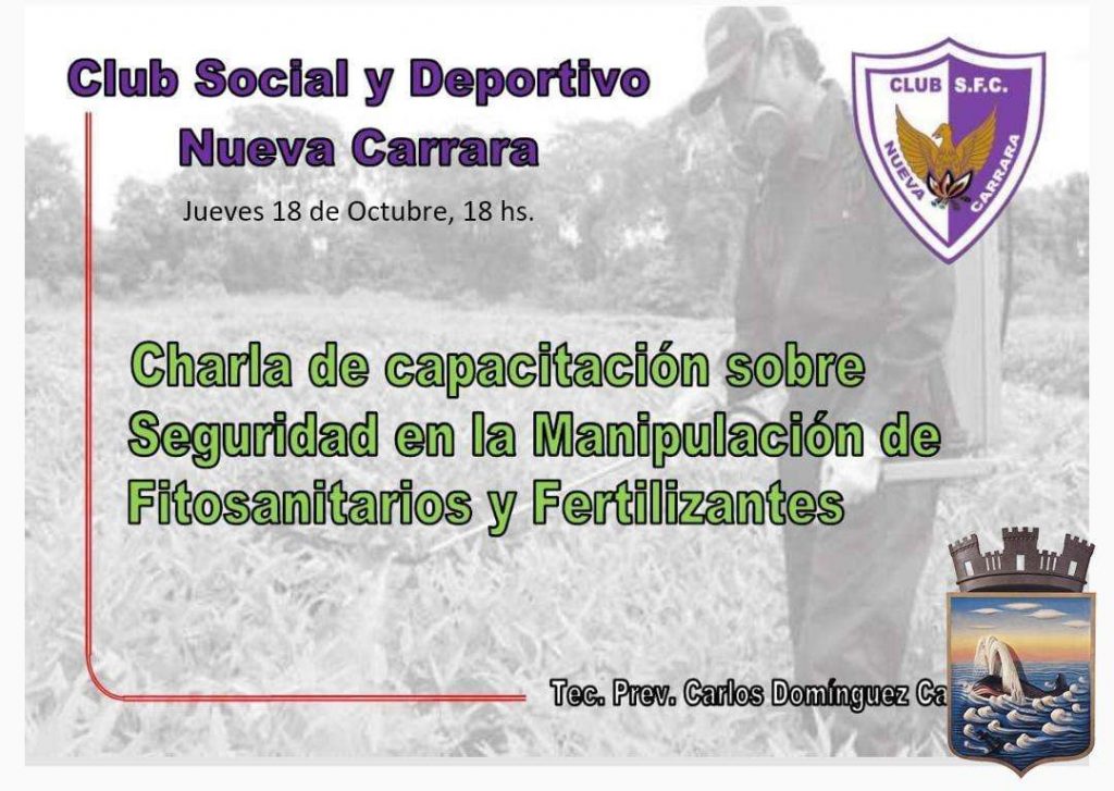 El jueves 18 de octubre a partir de las 18 horas en el Club Nueva Carrara habrá una charla acerca de la Manipulación Segura de Fitosanitarios y Fertilizantes.