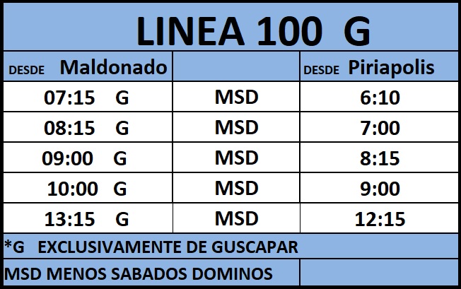 Horarios de la Linea 100 Guscapar