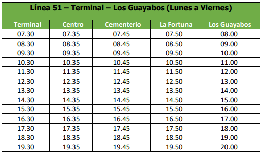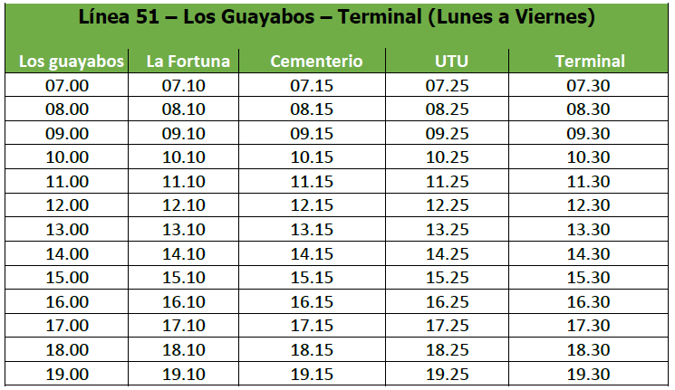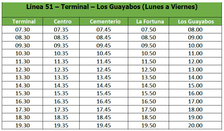 Línea 51 – Terminal – Los Guayabos (Lunes a Viernes)