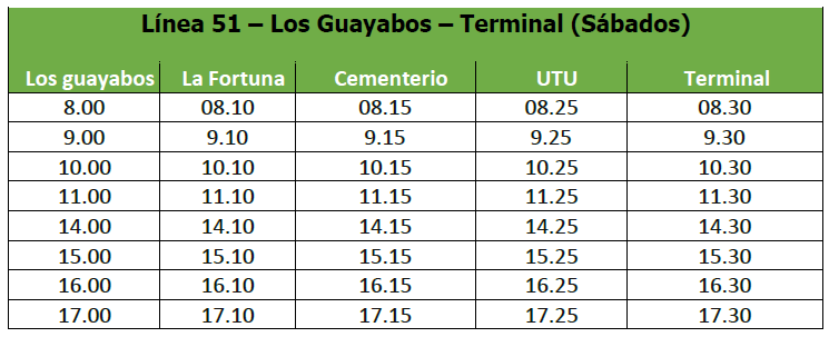 Línea 51 – Terminal – Los Guayabos (Sábados)
