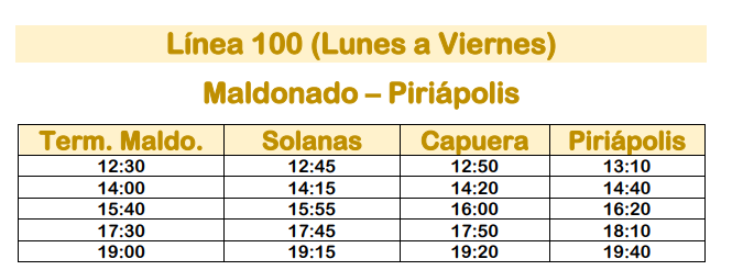 Horarios de la Linea 100 Micro Ltda