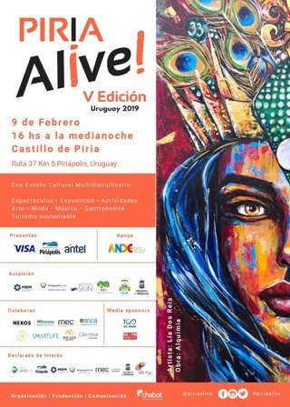 Patricia Chabot, organizadora del espectáculo, te invita a vivir una experiencia mágica en el entorno del emblemático Castillo de Piria. El sábado 9 de febrero de 16 hs a la medianoche llega la 5a Edición de PIRIA ALIVE, el festival multidisciplinario, interactivo y eco “friendly” con acceso libre y apto para todo público.