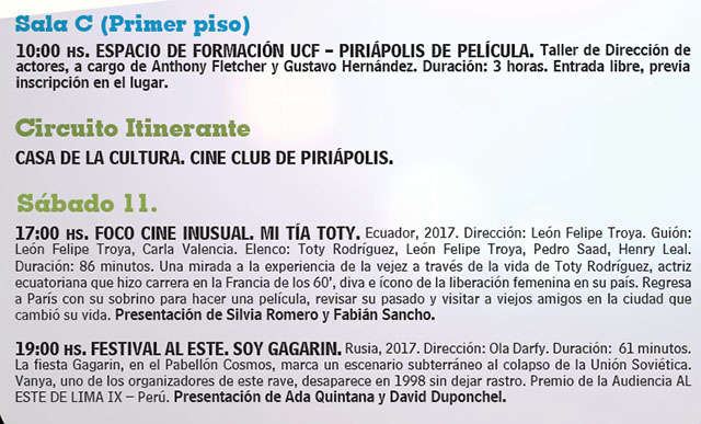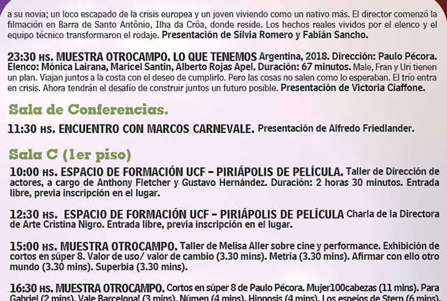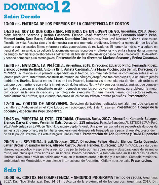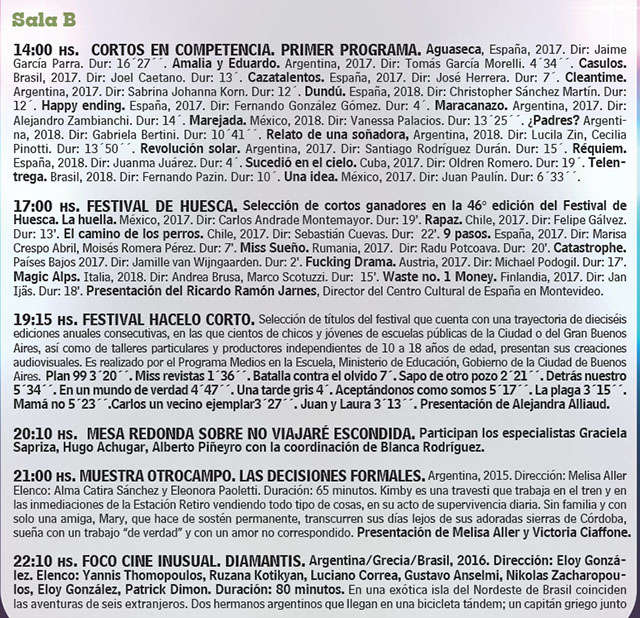 A continuación la programación completa para los tres días y al final de la página, los afiches con la programación de la competencia de cortos.
