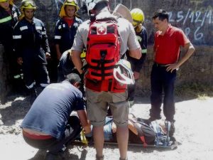Constituidos en el lugar, Bomberos y rescatistas asistieron al hombre, que en camilla los trasladaron al pie del cerro donde lo aguardaba el equipo médico de una unidad de emergencia móvil que le brindó asistencia en el lugar y posteriormente lo trasladó a un centro de salud local.