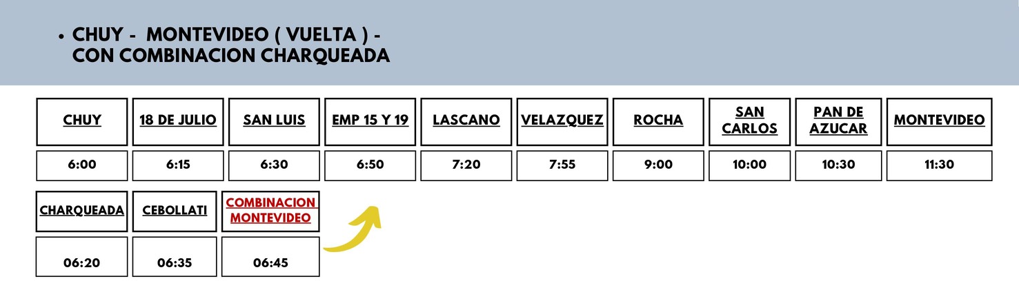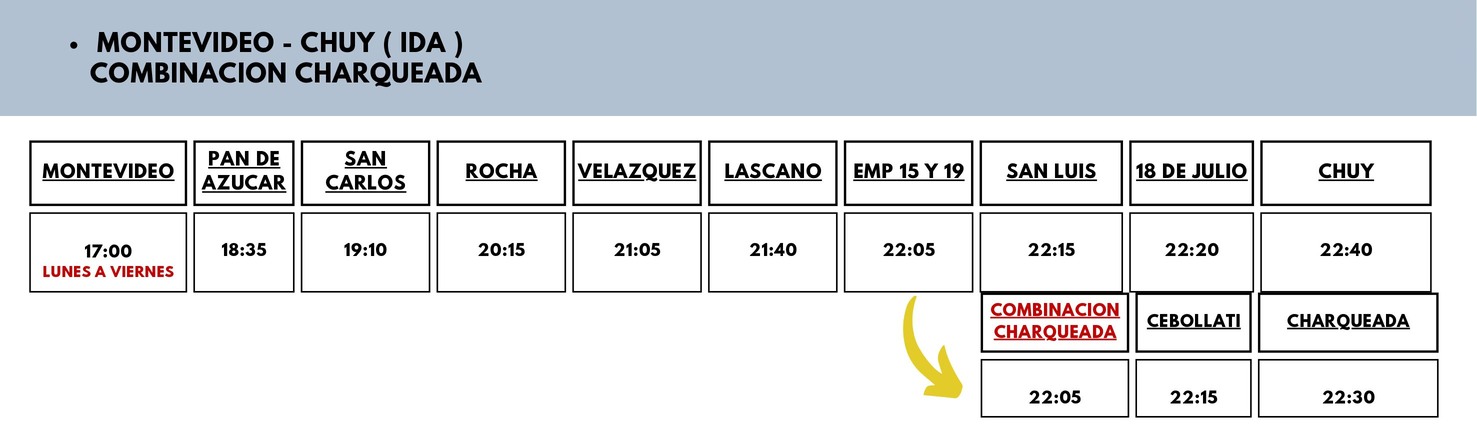 Horarios RUTAS DEL SOL – Chuy – Montevideo – Combinación Charqueada