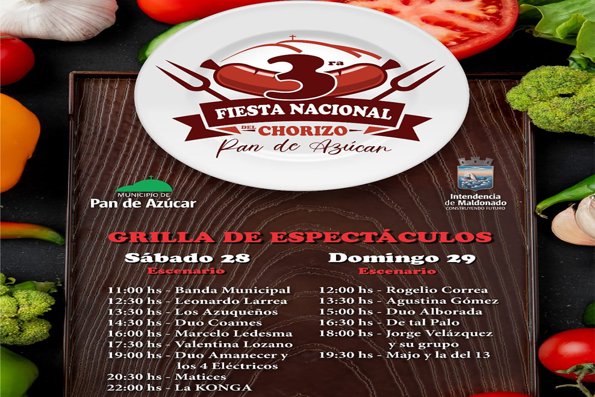 La tan esperada tercera edición de la Fiesta del Chorizo se llevará a cabo en el Parque «Zorrilla de San Martín» en nuestra querida ciudad de Pan de Azúcar, gracias a la colaboración de la Intendencia de Maldonado y el gobierno local.